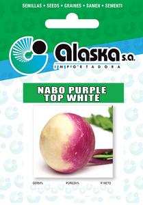 Nabo de raíces redondeadas con la mitad superior es rojo púrpura y la mitad inferior es blanca.